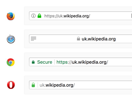 На некоторых страницах рядом с адресом страницы в браузере отображается значок блокировки. Это зеленый, золотой и серый. Бывает, что блокировка пересекается как полностью отсутствующая, и иногда появляется зеленая линия с названием компании рядом с доменным именем.